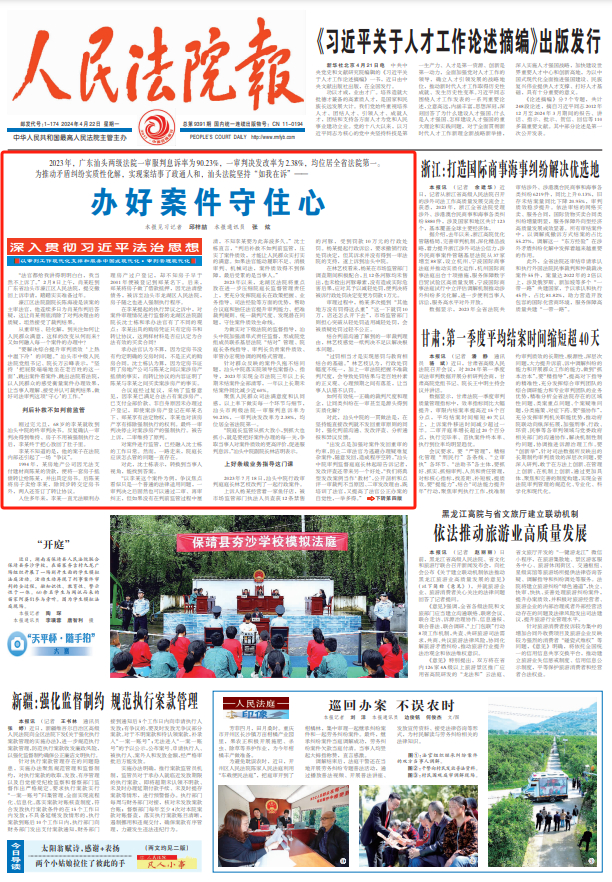 2023年,广东汕头两级法院一审服判息诉率为90.23%,一审判决发改率为2.38%,均位居全省法院第一。为推动矛盾纠纷实质性化解,实现案结事了政通人和,汕头法院坚持“如我在诉”——