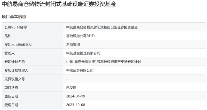 积极调整策略 中航易商仓储物流REIT回复交易所反馈