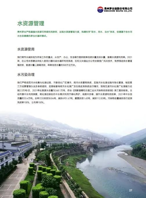 例如水资源管理,茅台只用了半页篇幅,阐述的内容较为空洞,并没有披露实际用水量这类干货数据。