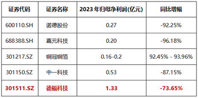 2023年电解铜箔上市公司净利润及同比增幅