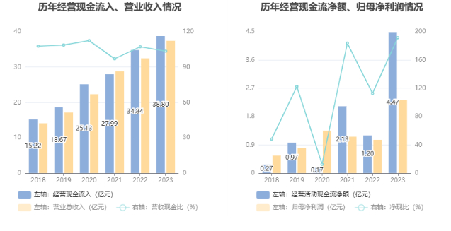 2023年,公司营业收入现金比为103.56%,净现比为191.72%。