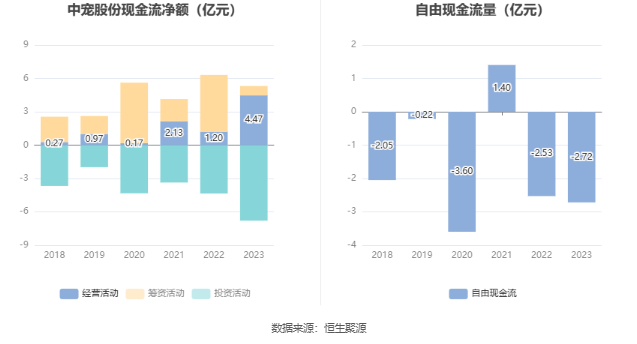 进一步统计发现,2023年公司自由现金流为-2.72亿元,上年同期为-2.53亿元。