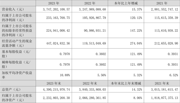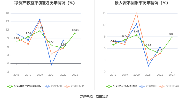 数据显示,2023年公司加权平均净资产收益率为10.88%,较上年同期增长5.32个百分点;公司2023年投入资本回报率为8.83%,较上年同期增长4.12个百分点。