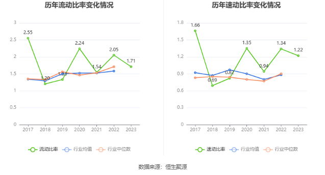 2023年,公司流动比率为1.71,速动比率为1.22。