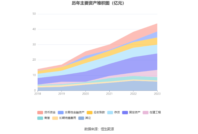 资产重大变化方面,截至2023年年末,公司交易性金融资产较上年末增加288.42%,占公司总资产比重上升6.25个百分点;在建工程较上年末增加113.93%,占公司总资产比重上升4.96个百分点;货币资金较上年末减少8.76%,占公司总资产比重下降3.03个百分点;存货较上年末减少4.82%,占公司总资产比重下降2.66个百分点。