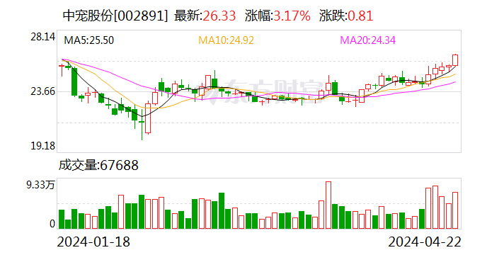 以4月22日收盘价计算,中宠股份目前市盈率(TTM)约为33.21倍,市净率(LF)约为3.47倍,市销率(TTM)约为2.07倍。