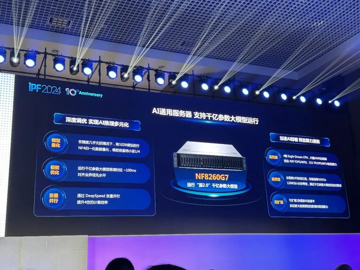 因此,浪潮信息联合英特尔发布了AI通用服务器,可实现浪潮信息千亿大模型源2.0部署、优化、测试,这也是业界首次实现基于CPU处理器的千亿参数模型推理。
