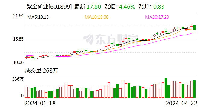 紫金矿业:2024年第一季度净利润62.61亿元 同比增长15.05%
