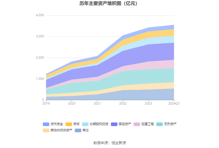 资产重大变化方面,截至2024年一季度末,公司固定资产较上年末减少0.13%,占公司总资产比重下降0.89个百分点;无形资产较上年末减少0.23%,占公司总资产比重下降0.76个百分点;其他权益工具投资合计较上年末增加20.77%,占公司总资产比重上升0.66个百分点;货币资金较上年末增加14.63%,占公司总资产比重上升0.56个百分点。