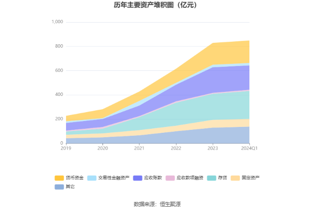 资产重大变化方面,截至2024年一季度末,公司应收账款较上年末减少4.95%,占公司总资产比重下降1.84个百分点;存货较上年末增加7.77%,占公司总资产比重上升1.35个百分点;预付款项较上年末增加65.72%,占公司总资产比重上升0.40个百分点;其他应收款(含利息和股利)较上年末减少21.34%,占公司总资产比重下降0.39个百分点。