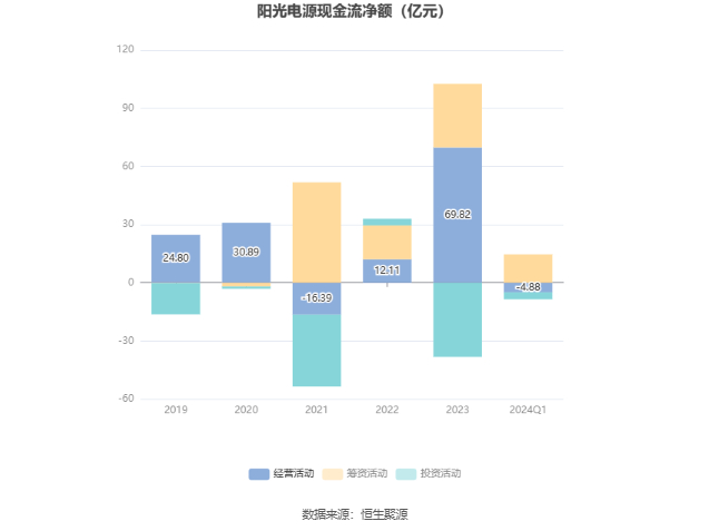 2024年第一季度,公司经营活动现金流净额为-4.88亿元,同比增加3.06亿元;筹资活动现金流净额14.68亿元,同比减少5.64亿元;投资活动现金流净额-3.65亿元,上年同期为-21.87亿元。