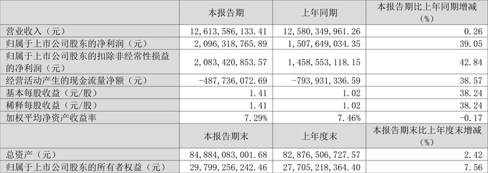 数据显示,2024年第一季度公司加权平均净资产收益率为7.29%,较上年同期下降0.17个百分点;公司2024年第一季度投入资本回报率为5.32%,较上年同期下降0.18个百分点。