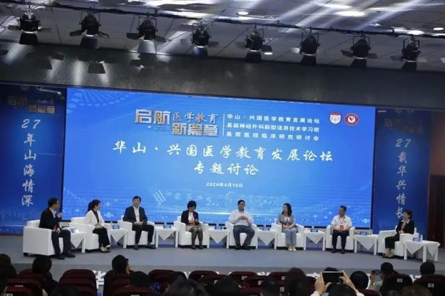 2024年4月18日至21日,华山·兴国教育发展论坛举办,复旦大学附属华山医院党委书记邹和建,江西省卫健委党组成员、副主任、省疾控局党组书记、局长李中坚,赣南医科大学党委委员、副校长盛瑶环,县委书记李贱贵,县委副书记、县长刘章宏,华山医院原院长张元芳,华山医院党委委员、副院长伍蓉,华山医院党委副书记、工会主席顾宇翔,华山医院原党委副书记王佩敏,赣州市卫健委党组成员、副主任钟玉平,江西省卫健委原计生协专职副会长罗礼生,赣南卫职院党委副书记、院长刘辉,县委常委、县政府副县长任家胤,赣南医科大学教务处负责人、全科医学院院长罗晓婷,陈灏珠院士医学发展专项基金主任陈芸,上海信托慈善信托部总经理蔡汝溶 ,复旦大学上海医学院教务处副处长、华山医院党委学工部部长向阳,赣南医科大学第一临床学院院长邹晓峰,赣南医科大学教务处副处长黄光生,县委卫健工委书记、县卫健委主任王金陵,兴国县人民医院党委副书记、院长朱艳萍等在家的领导班子成员,华山医院教育处、神经外科及对口支援医疗队专家等出席开幕仪式。