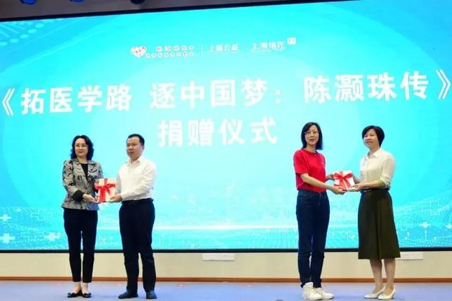 陈芸、蔡汝溶代表陈灏珠院士基金会向兴国捐赠《拓医学路 逐中国梦:陈灏珠传》,任家胤、王金陵接受捐赠。这不仅是知识的传递,也是两院友谊的象征。