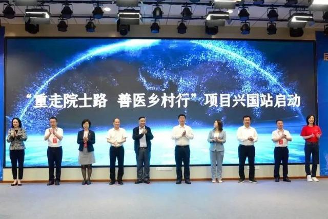 会上,邹和建、李中坚、盛瑶环、李贱贵、刘章宏、伍蓉、钟玉平、刘辉、陈芸、蔡汝溶共同启动“重走院士路,善医乡村行”项目兴国站。