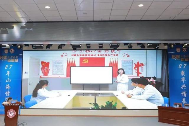 复旦大学附属华山医院神经外科第一党支部书记顾宇翔、兴国县人民医院外科第二党支部书记杨冠桂共同上台,为结对共建党支部揭牌。
