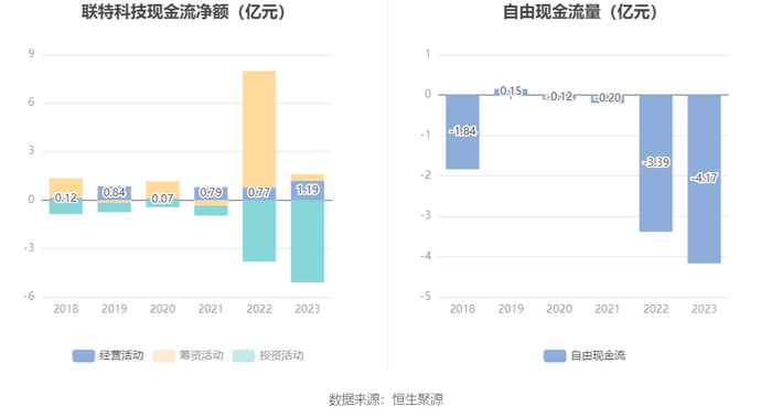 进一步统计发现,2023年公司自由现金流为-4.17亿元,上年同期为-3.39亿元。