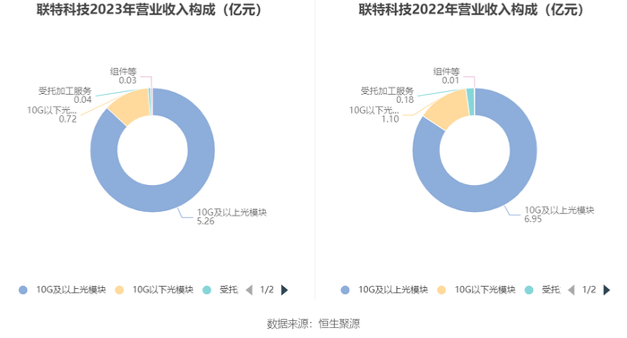 分产品看,10G及以上光模块、10G以下光模块、受托加工服务2023年毛利率分别为23.95%、36.63%、-20.92%。