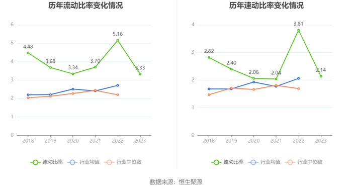 2023年,公司流动比率为3.33,速动比率为2.14。