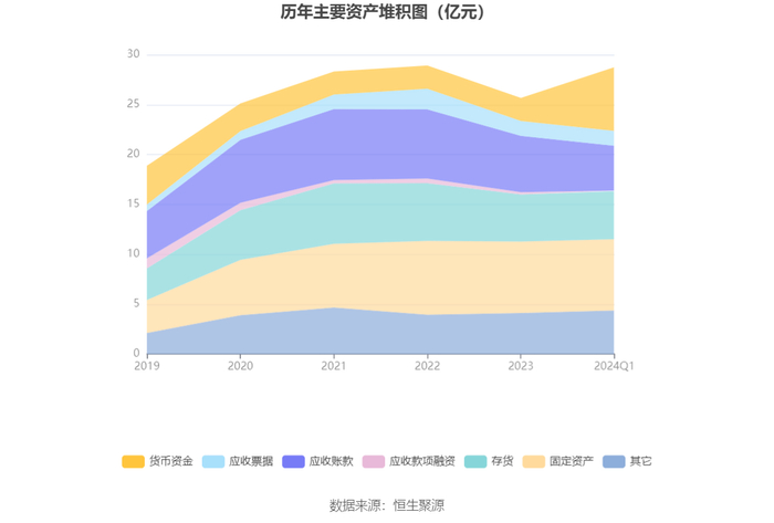 资产重大变化方面,截至2024年一季度末,公司货币资金较上年末增加176.39%,占公司总资产比重上升13.22个百分点;应收账款较上年末减少20.36%,占公司总资产比重下降6.36个百分点;固定资产较上年末减少0.33%,占公司总资产比重下降3.07个百分点;存货较上年末增加1.32%,占公司总资产比重下降1.76个百分点。