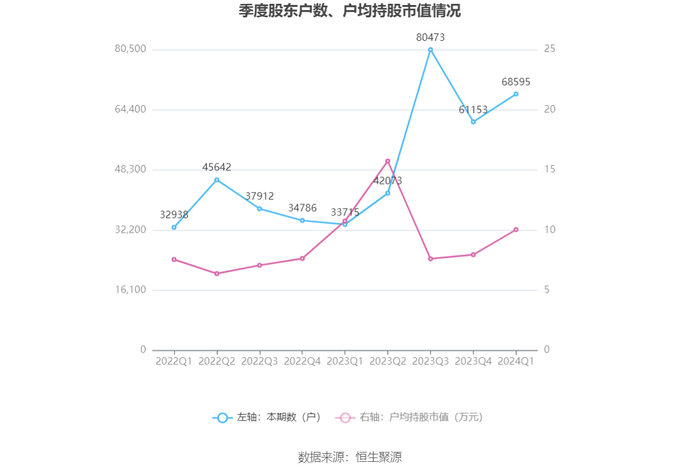 筹码集中度方面,截至2024年一季度末,公司股东总户数为6.86万户,较上年末增长了7442户,增幅12.17%;户均持股市值由上年末的7.96万元上升至10.04万元,增幅为26.13%。