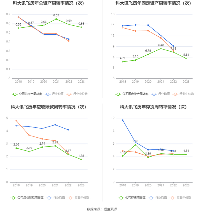 数据统计显示,科大讯飞近三年营业总收入复合增长率为14.69%,在横向通用软件行业已披露2023年数据的15家公司中排名第4。近三年净利润复合年增长率为-21.60%,排名8/15。