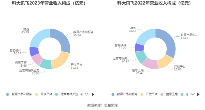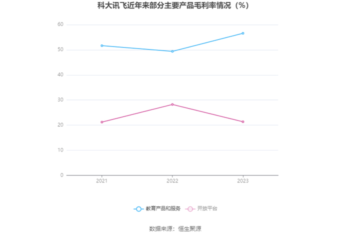 分产品看,教育产品和服务、开放平台、运营商相关业务2023年毛利率分别为56.59%、21.35%、45.37%。