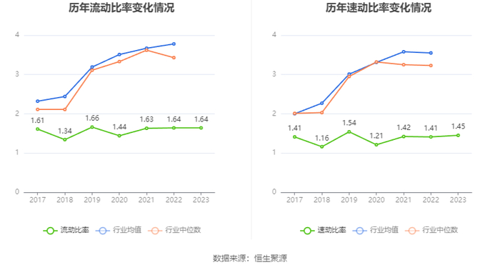 2023年,公司流动比率为1.64,速动比率为1.45。