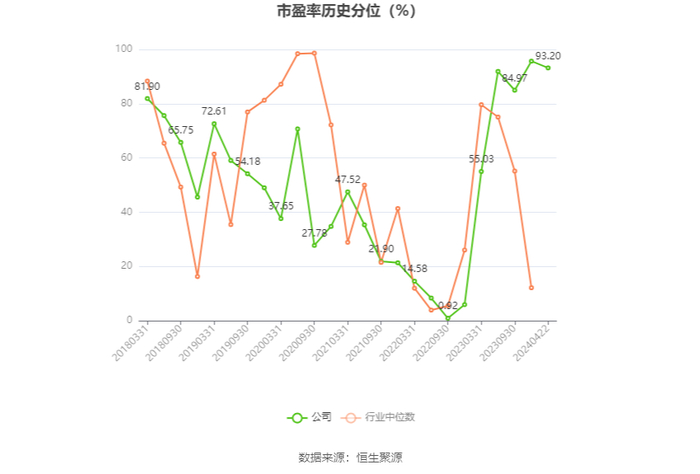 市盈率为负时,不显示当期分位数,会导致折线图中断。