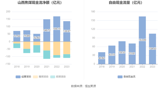 进一步统计发现,2023年公司自由现金流为104.63亿元,相比上年同期下降36.16%。