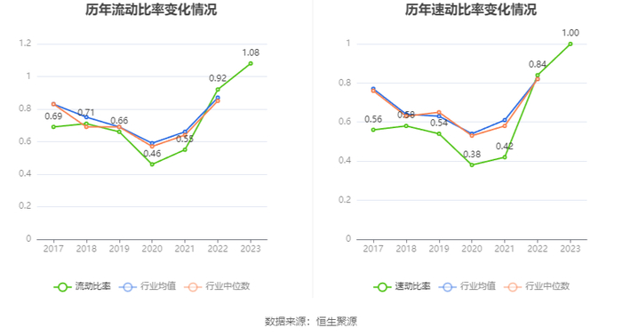 2023年,公司流动比率为1.08,速动比率为1.00。
