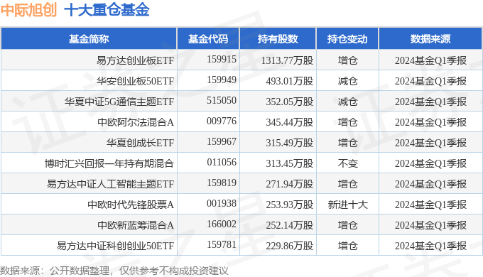 重仓中际旭创的前十大基金见下表: