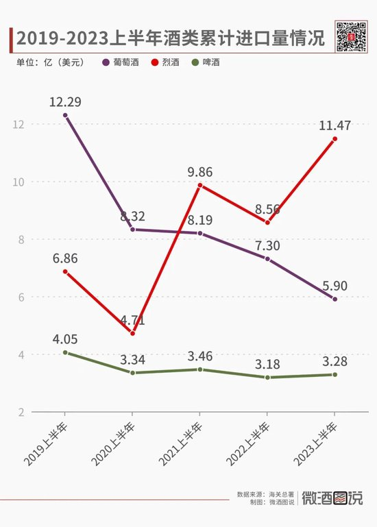 放眼进口酒市场,洋酒是过去5年唯一实现正向增长的品类。尤其是在2020-2022年的特殊背景下,洋酒在进口额上甚至超过葡萄酒,登顶进口酒类的第一位。