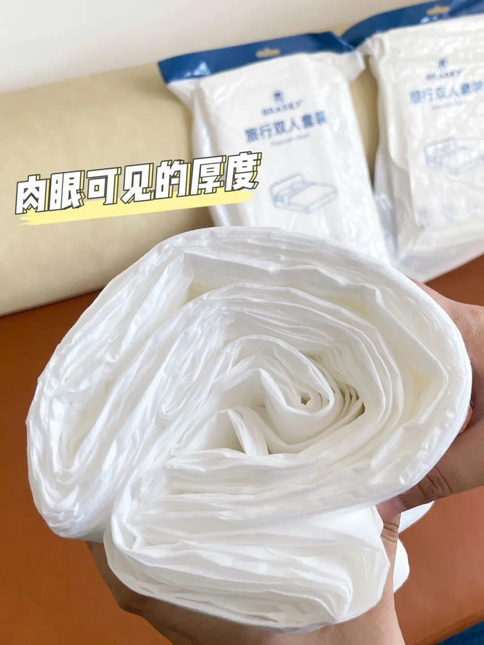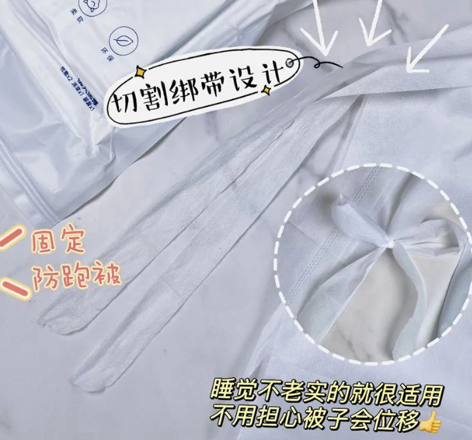 这款一次性床品采用SMS无纺布,面料亲肤细腻,摸起来柔柔韧韧,超级舒服。