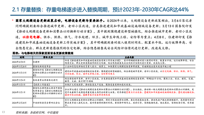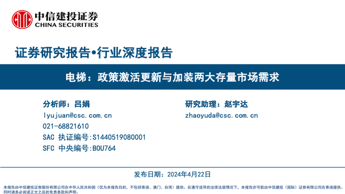 中信建投 | 电梯:政策激活更新与加装两大存量市场需求