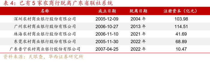 目前深圳农商行、广州农商行、珠海农商行、东莞农商行、普宁农商行等多家农商行已经脱离省联社系统,管理权移交至地方政府。广东省联社成立于2005年,而在2004年,深圳农村信用社就从广东省农村信用社体系中单列出来,独立改制组建深圳农村商业银行。2013年,广州农商行也脱离省联社系统。2021年以来,珠海农商行、东莞农商行、普宁农商行先后宣布脱离省联社系统。
