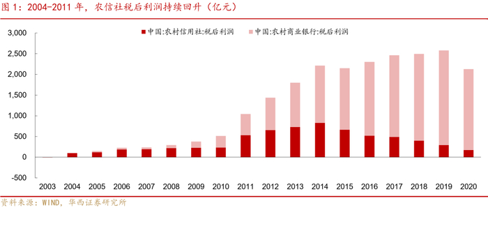 自各省联社成立的十年间,其在促进辖内农信社健康持续经营、消化历史挂账、改善资产质量、搭建系统平台、加强内控管理等方面发挥了重大作用。2004年,农信社首次轧差盈利,当年实现税后利润96.6亿元,2004-2011年这8年间,农信社税收利润持续高增,至2011年已达到531.2亿元。另外,农信机构的资产质量也在改善,从农商银行不良贷款率来看,2005年初还在6%以上,2011年末已经降至1.6%。