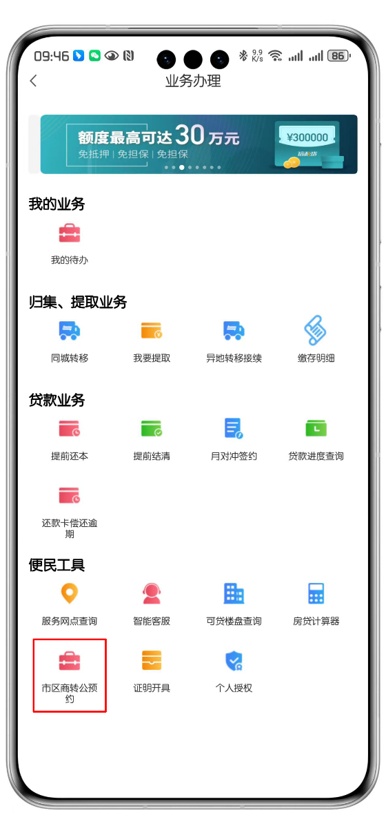 (三)预约途径:手机公积金APP-首页-市区商转公预约。