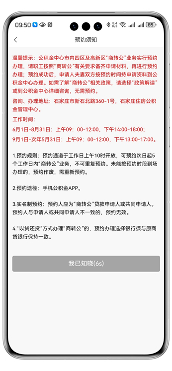 中心自2024年4月26日起,开放“商转公”业务预约,商贷所购住房在市内四区及高新区的“商转公”业务实行预约办理,职工可通过手机公积金APP进行预约。