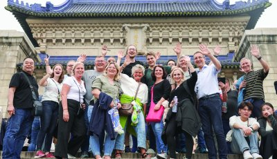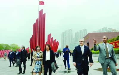 南京的美景让德国迪特福特市代表团一行频频驻足“拍照合影”。