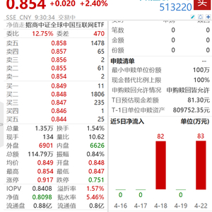 隔夜中概股大涨,拼多多大涨9.38%,哔哩哔哩涨超7%,中概互联ETF(513220)早盘跳涨2.4%