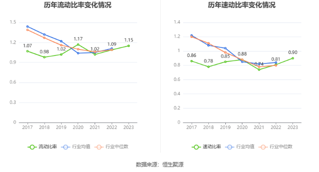2023年,公司流动比率为1.15,速动比率为0.90。