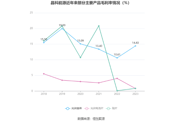 分产品看,光伏组件、光伏电池片、硅片2023年毛利率分别为14.43%、0.82%、0.85%。