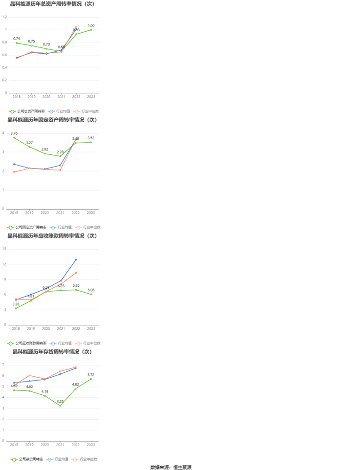 数据统计显示,晶科能源近三年营业总收入复合增长率为52.20%,在光伏电池组件行业已披露2023年数据的7家公司中排名第3。近三年净利润复合年增长率为92.59%,排名2/7。