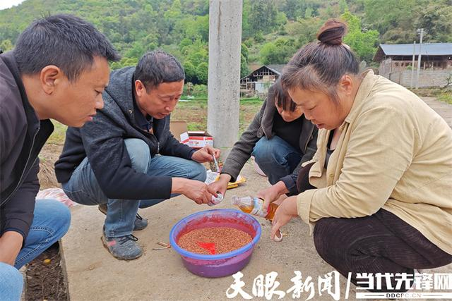 “这是种衣剂,主要作用是防止地下害虫啃食高粱种,每三包高粱种放一包种衣剂就可以了。这个是植物生长调节剂,能够促进高粱幼苗生长,防止倒伏,提高产量。”在刚刚平整出来的高粱地旁,余庆县敖溪镇市级“双培养”讲师文天德正在向种植户讲解高粱种包衣的配比。