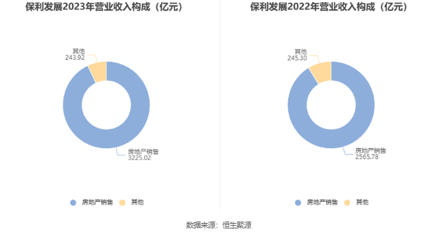 分产品来看,2023年公司主营业务中,房地产销售收入3225.02亿元,同比增长25.69%,占营业收入的92.97%。
