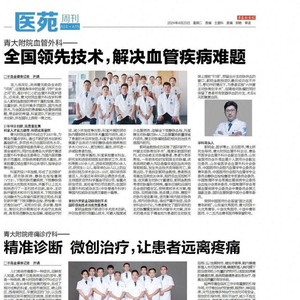 青大附院血管外科成立于2007年,为青岛市重点学科,通过不断的技术创新和基础研究,多项技术已达国际领先水平。科室现为全国学组委员单位,总体实力位居全省前列,同时也是青岛大学医疗集团血管外科专委会主委单位,为国内首家静脉示范基地、动脉疾病载药技术基地,并承担着区域血管外科业务培训、指导会诊等任务。
