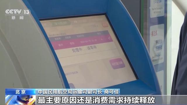 中国民用航空局运输司副司长 商可佳:今年“五一”期间,全国民航预计发送旅客1010万人次,同比增长9.5%。民航客运市场的火爆最主要原因还是消费需求的持续释放,运输生产回归自然增长,全面跨入提质增效阶段。