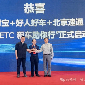 (合肥)——2024年4月12日,在全国汽车租赁行业质量发展(合肥)会议的“好人好车之夜”欢迎晚宴上,北京好人好车科技有限公司(以下简称“北京好人好车”)、蚂蚁集团支付宝(以下简称“支付宝”)与北京速通科技有限公司(以下简称“北京速通”)共同宣布,三方联合推出“共享ETC,租车助你行”活动,并发布全新的共享ETC汽车租赁行业解决方案,旨在解决租车行业ETC使用痛点,为广大租车消费者提供高效、便捷的ETC服务,推动租车行业新质生产力发展。活动中,北京好人好车还发布了具备“油量精算”功能的新一代自助取还Tbox车机。
