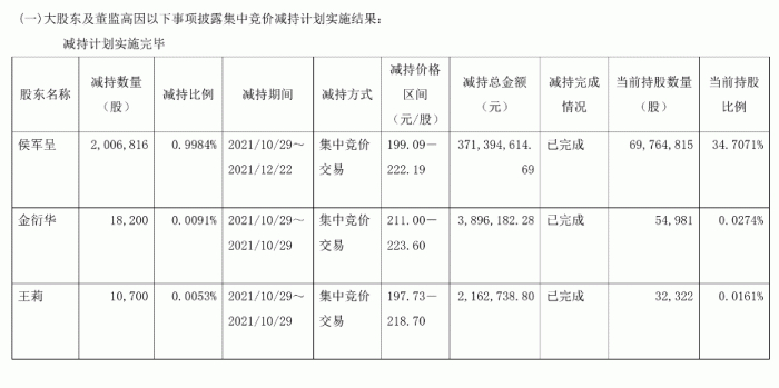 这批减持的最终结果是共减持586万股,减持价格区间为159.60-233.60,套现总金额11亿元。